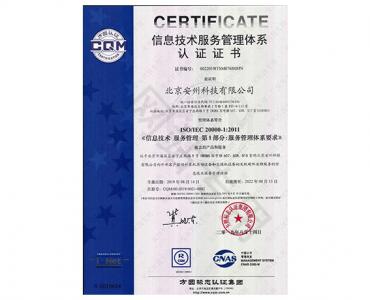 信息技術(shù)服務(wù)管理體系認(rèn)證證書(shū)ISO 20000-1