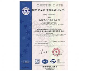 信息安全管理體系認(rèn)證證書(shū) ISO 27001