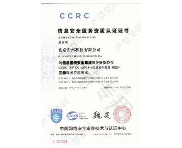 信息安全服務(wù)資質(zhì)認(rèn)證證書(shū) CCRC-ISV-C01